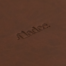 Gli accessori MADEE sono realizzati in similpelle premium italiana personalizzabili con il tuo logo impresso a caldo (non stampato sopra, ma impresso nel materiale). Disponibili in 14 colori per abbinare perfettamente la tua identità visiva.